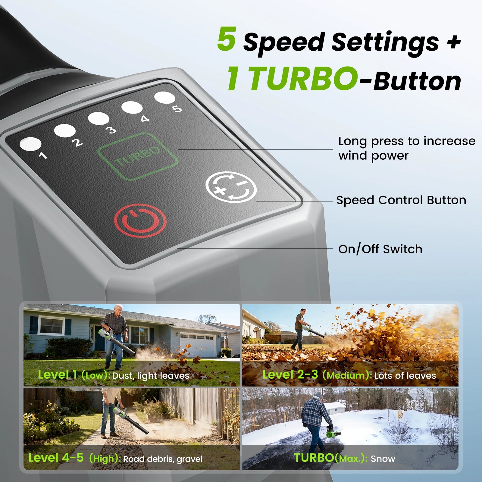 Speed Settings: 5 Adjustable Speeds for Dust, Leaves, Snow & More