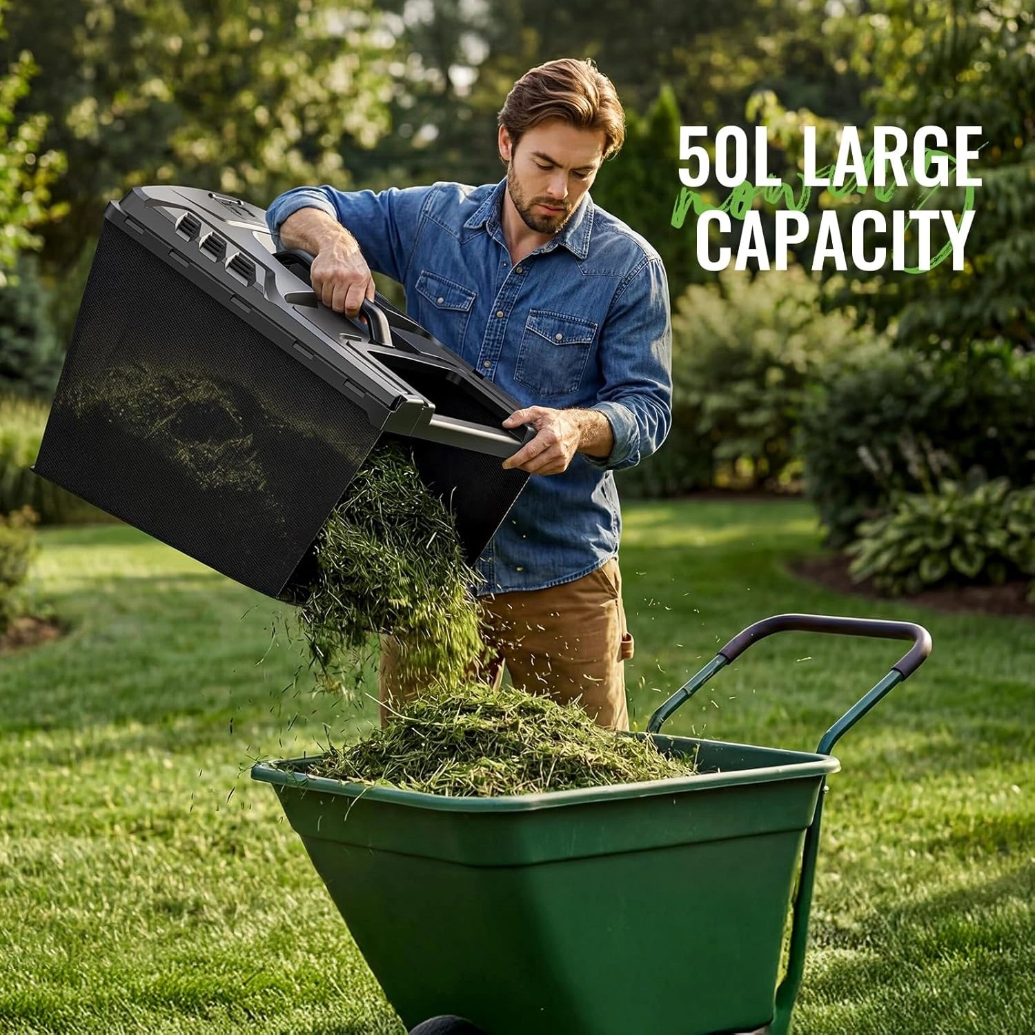 - 50L Large Grass Bag – High capacity, less clogging, fewer stops.