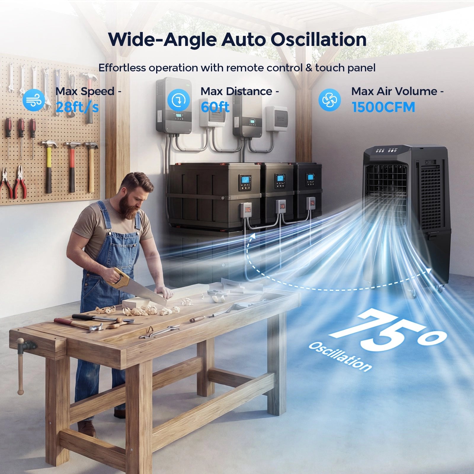 🔄 75° Wide-Angle Auto Oscillation