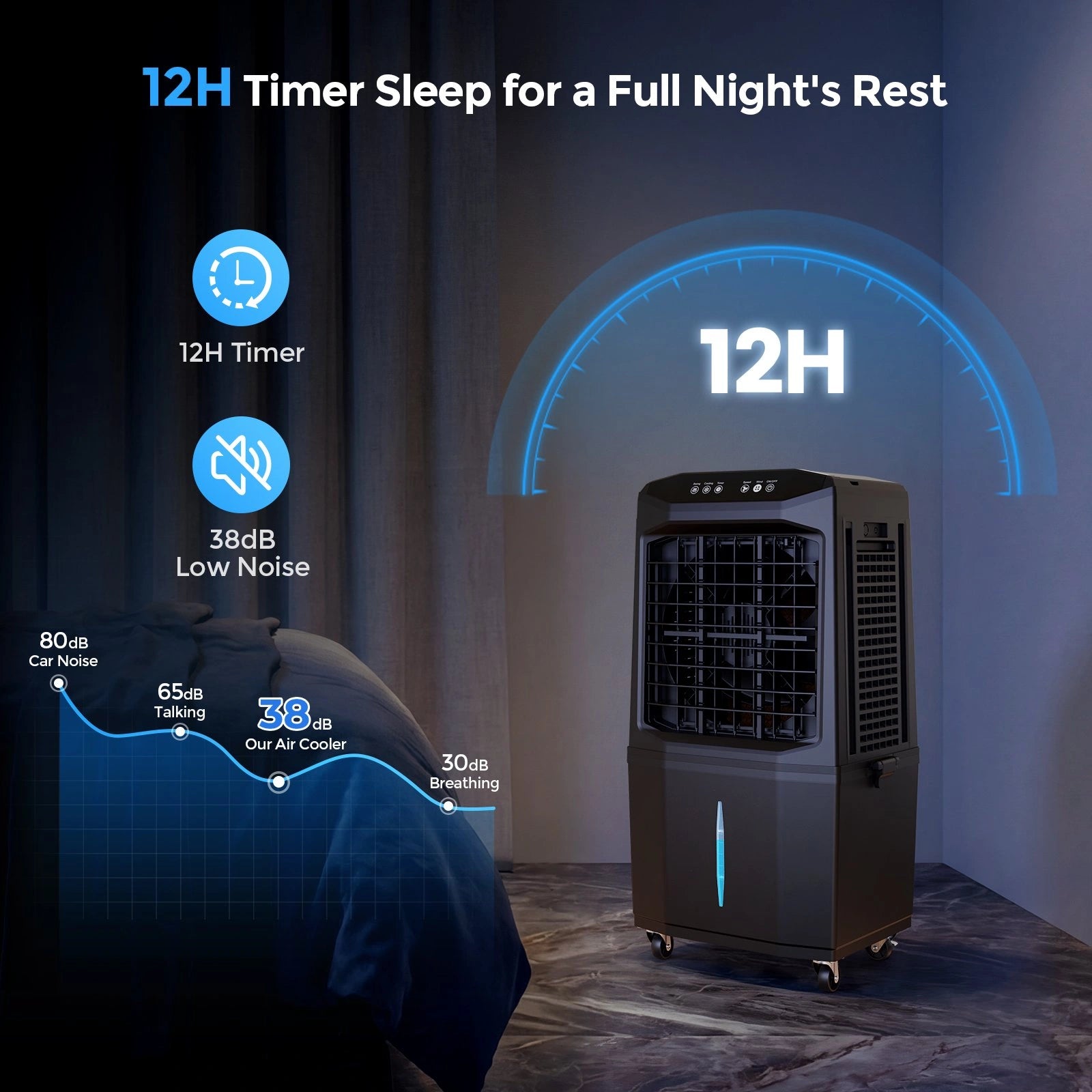 12-Hour Smart Timer: Preset shutdown time for energy savings and worry-free sleep