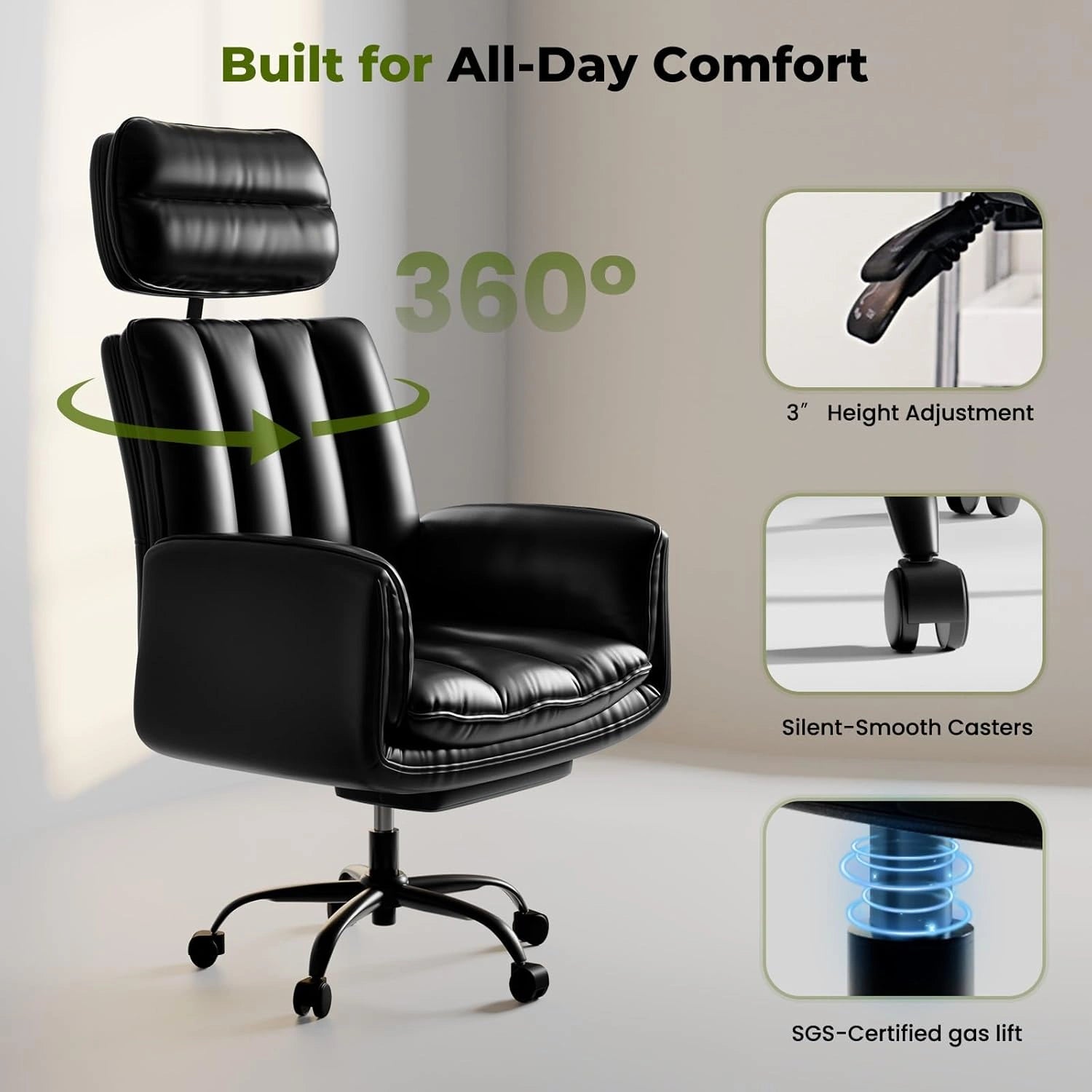 • 400 lbs Capacity & Full Adjustability – Recline, height adjustment, footrest, and 360° swivel with easy 15-minute setup.