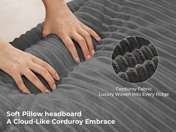 | Special Feature | Corduroy Fabric, Machine Washable, No Box Spring Needed, Tall Headboard, Upholstered |